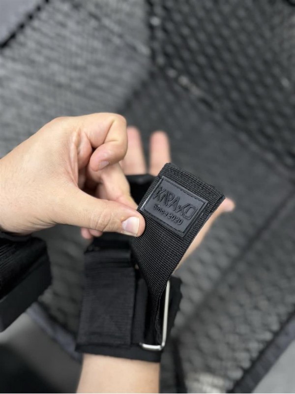بند لیفت قلاب دار Karako ترکیب بند لیفت و مچبند قلاب فولادی روکش ضد لغزش پد نئوپرن تسمه و چسب بسیار محکم مناسب لیفت، بارفیکس و انجام حرکات بدنسازی #1540