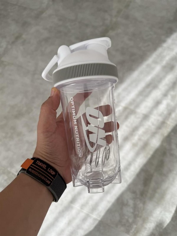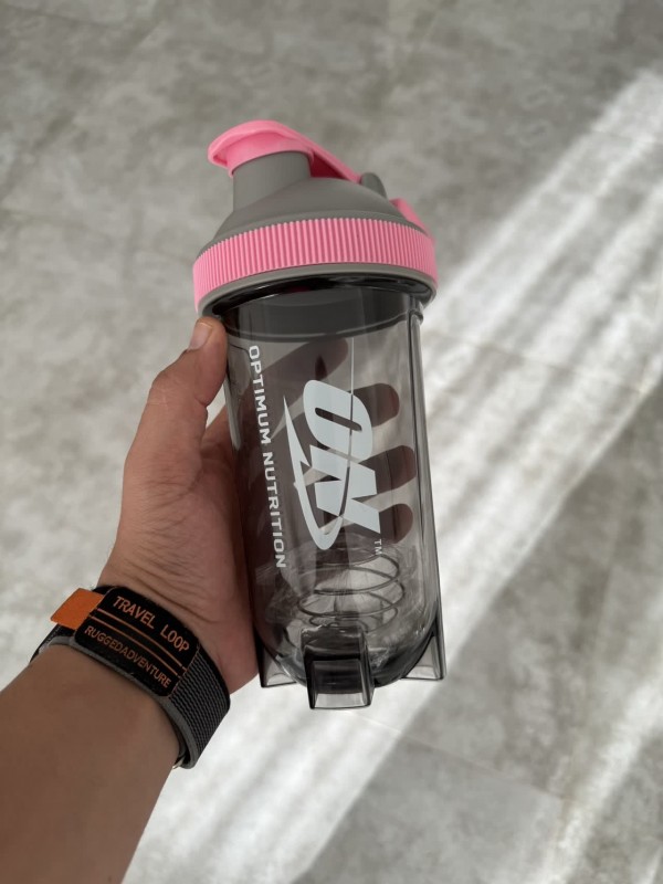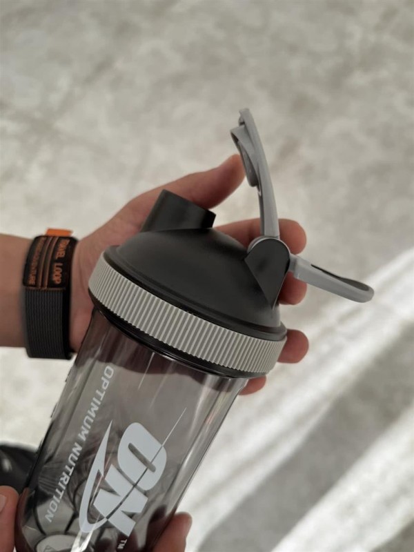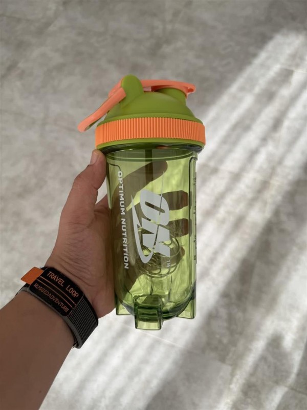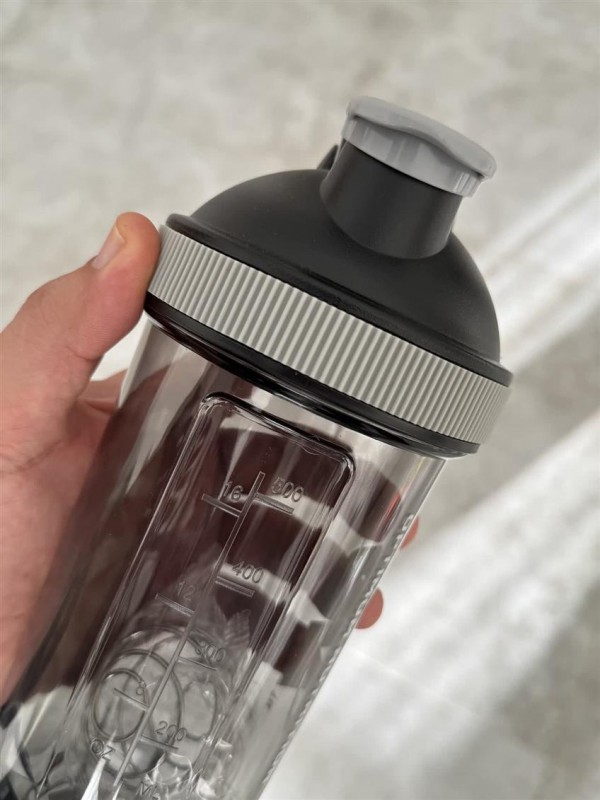 شیکر ورزشی وارداتی بدنه شفاف درب چفتی دور سیلیکونی دسته دار آنتی باکتریال ظرفیت 600 میل توپک شیک #1476