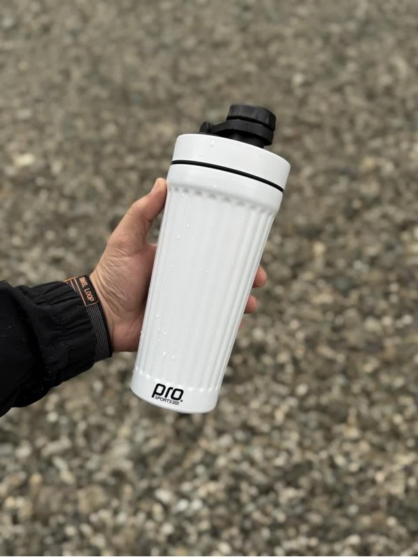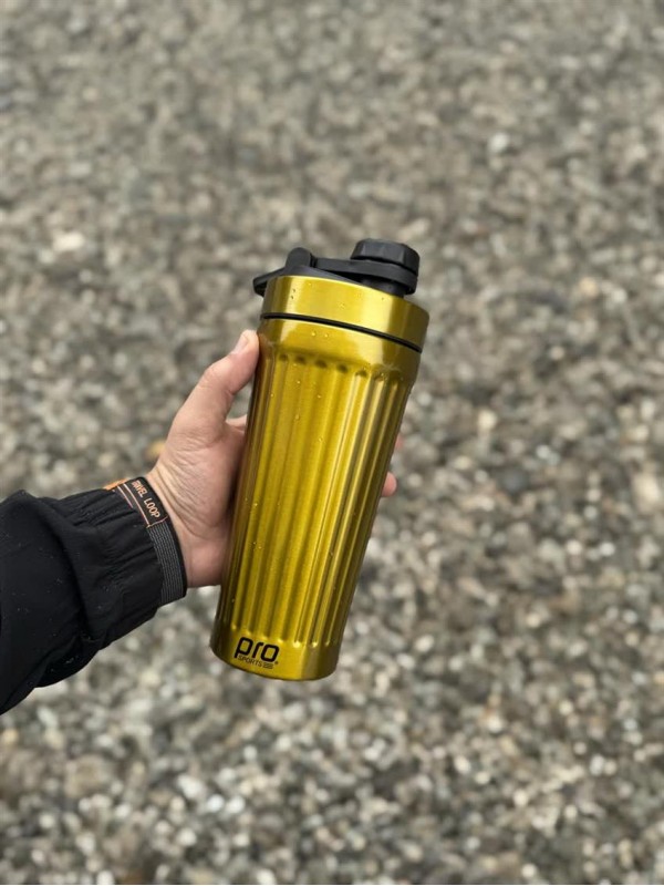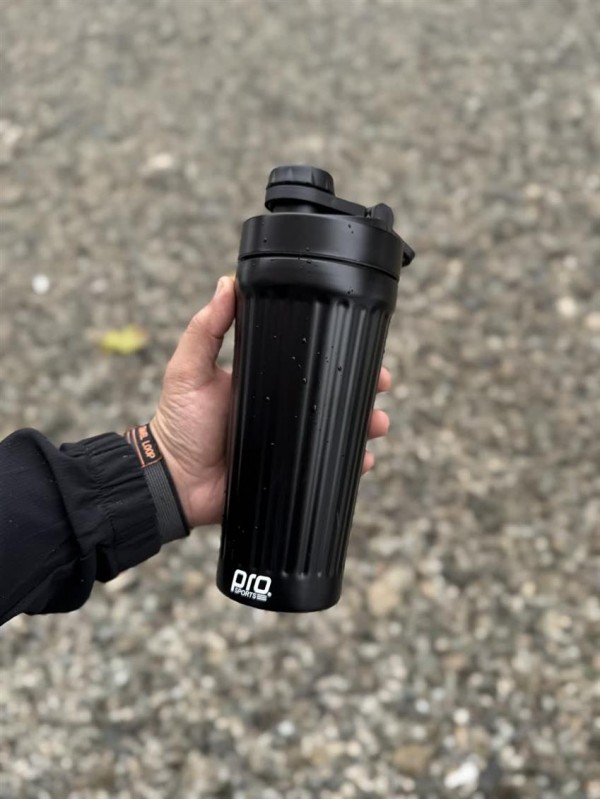 شیکر پرو اسپرت وارداتی فلزی درب پیچی واشر نشت گیر توپک شیک فلزی توری شیک جدا شونده بدنه شیاردار آنتی باکتریال ظرفیت 750 میل #1504