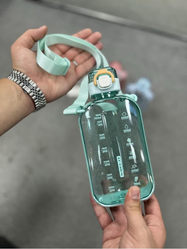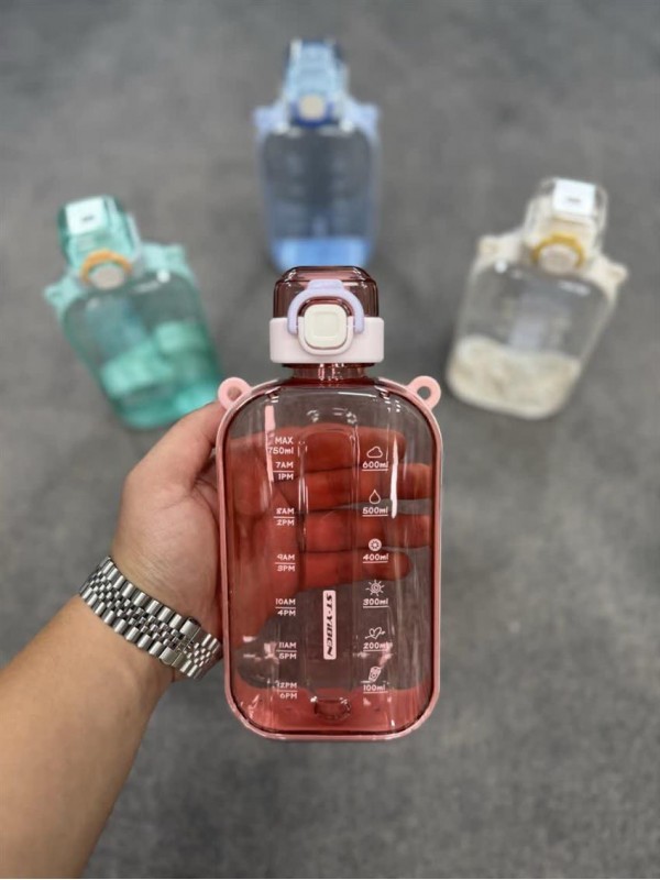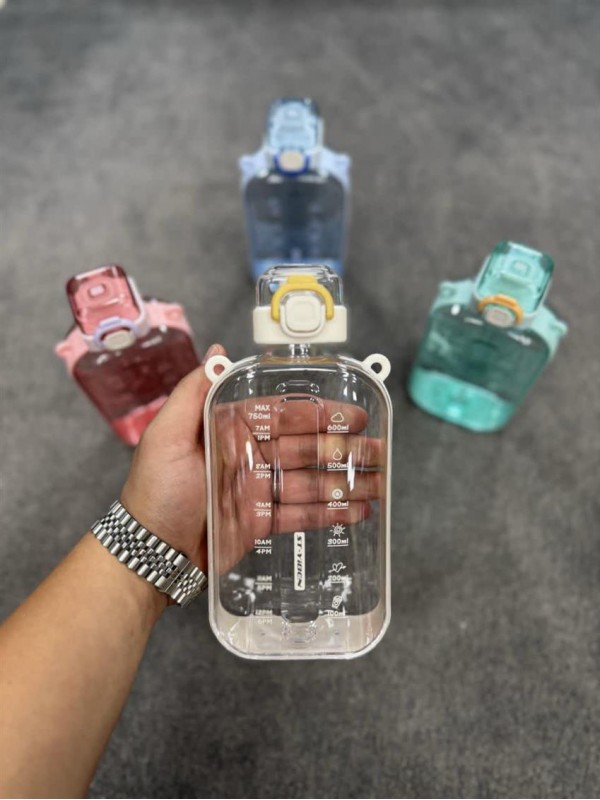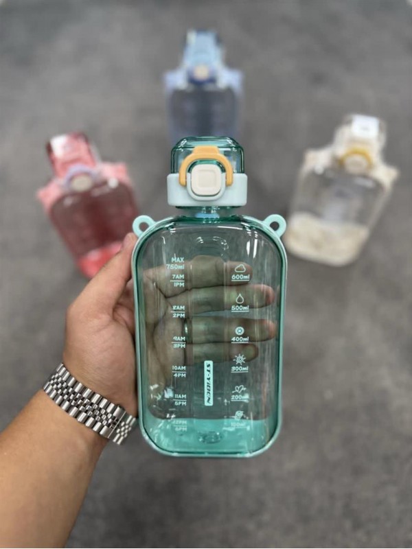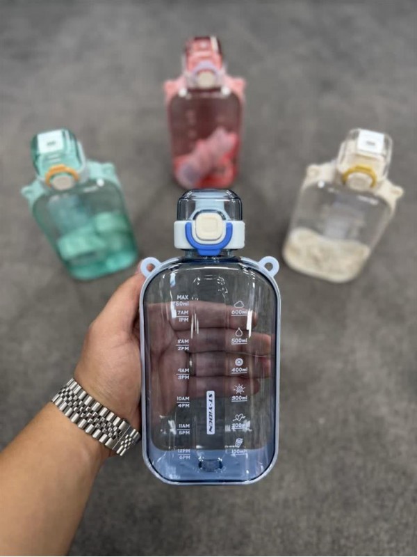 قمقمه کتابی وارداتی محصول برند ST-YIBEN آنتی باکتریال واشر نشت گیر درب قفل دار بند دار بدنه شفاف ظرفیت 750 میل #1430
